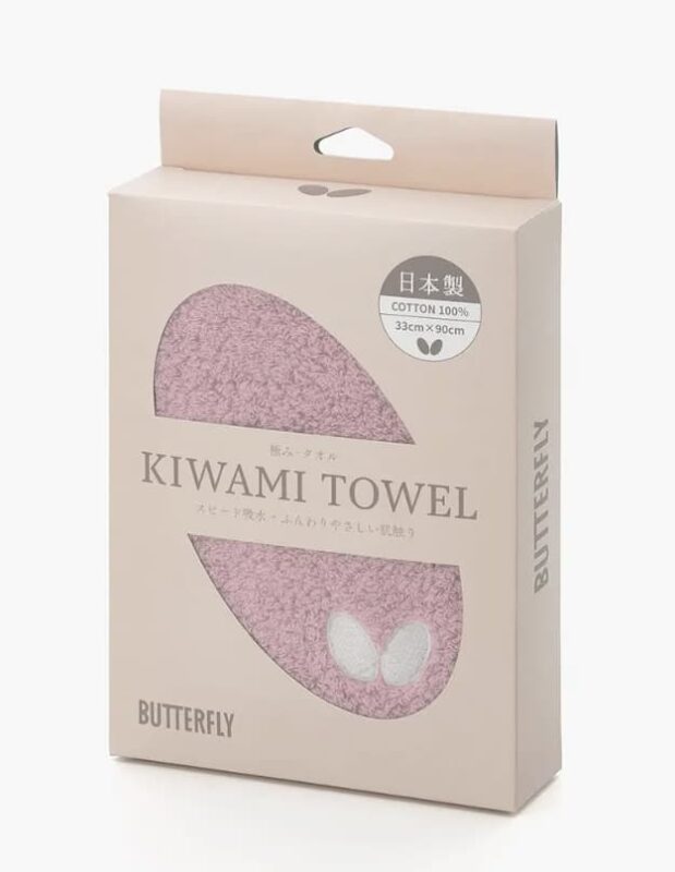 40歳半ばを過ぎた頃から、綿の心地よさに気づくようになりました。それまでは高機能の〇〇テック的な特殊繊維のアップデートにばかり注目していましたが、人生1周まわって、肌に触れる素材はやっぱり綿がいい。混ざりっけなしの100%綿がいい。特に大会で6の倍数ごとに触れるタオルは綿素材を推したい。なぜならタオルは、ひとりでコートに立つ不安、ミス連発の自責、とめどなく流れる冷や汗を拭い去ってくれる大切なサポーター。ゴワゴワしたお硬いアンチクショーや、ぺらっぺらの薄いコンチクショーでは務まりません。試合の最中でレディースの荒ぶる心をふわっと優しく包み込んでくれる。そんな卓球専用タオルを極めてくれてありがとう。